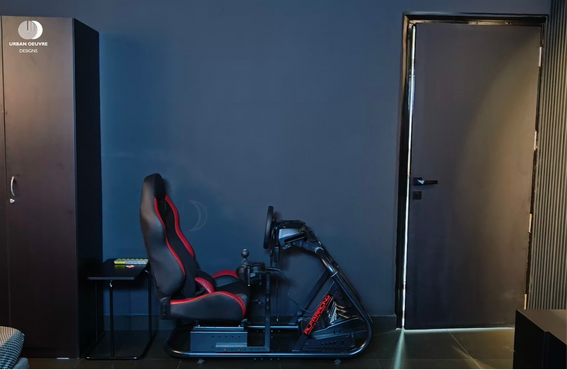 This bedroom embraces a sleek modern contemporary aesthetic with an all-black color scheme, exuding a sense of luxury and sophistication. The walls are adorned with fluted panels, adding subtle texture and depth, while the matte black paint finish enhances the room's elegance by diffusing light softly. Every piece of furniture, from the minimalist bed frame to the sleek side tables and wardrobe, is crafted in black, maintaining a cohesive monochromatic palette. The design balances darkness with refined simplicity, creating a cozy yet striking atmosphere that feels both bold and serene.